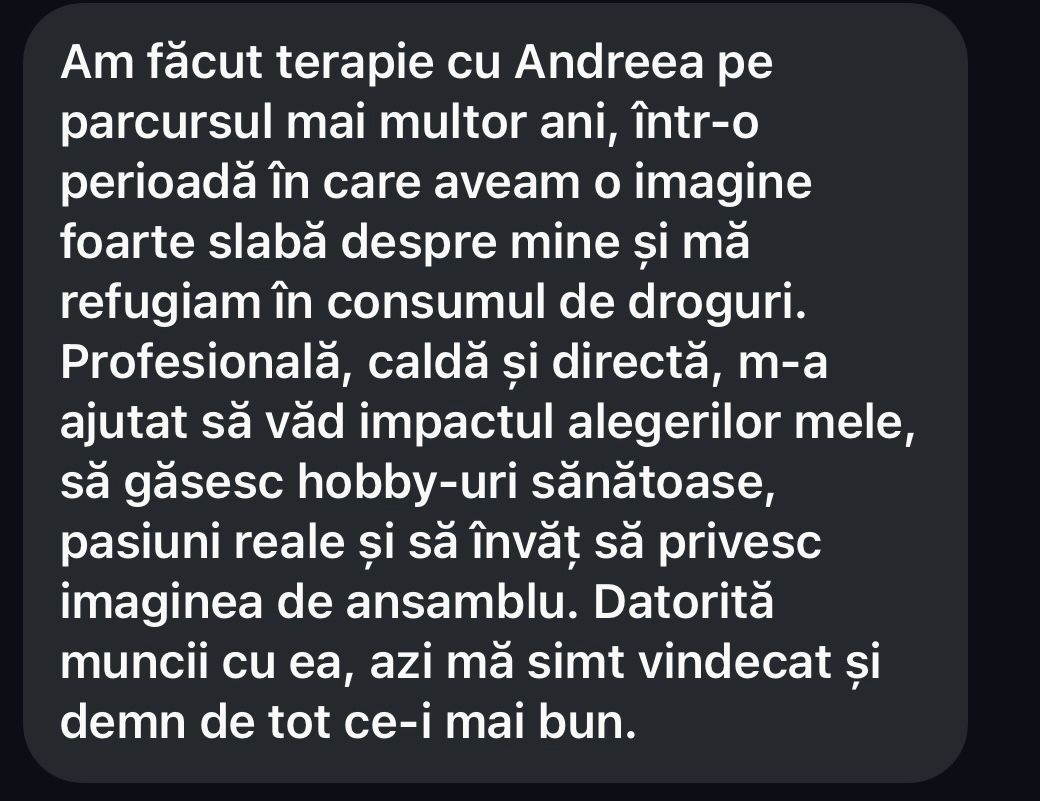 Dacă simți și tu că ai nevoie de un coleg de drum, te invit în cabinetul meu, fizic sau online, pentru a ne cunoaște mai bine.